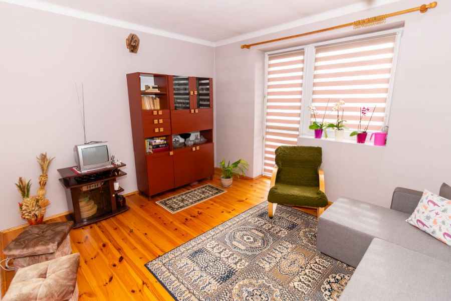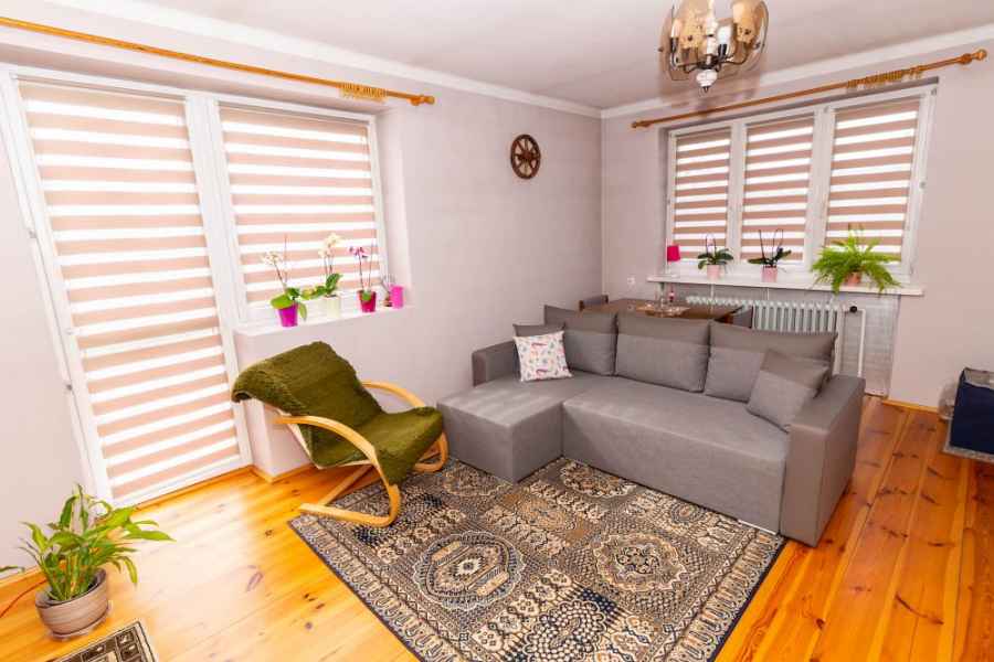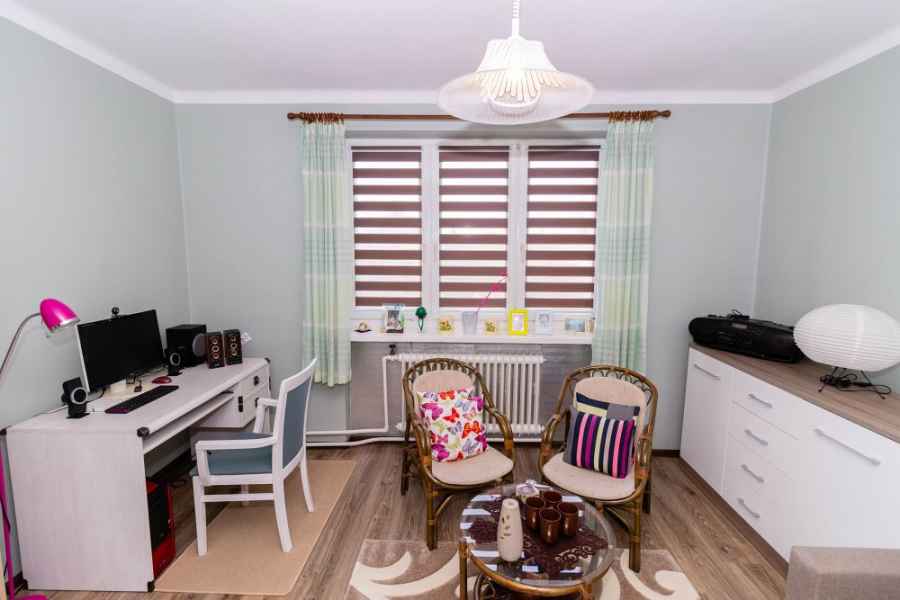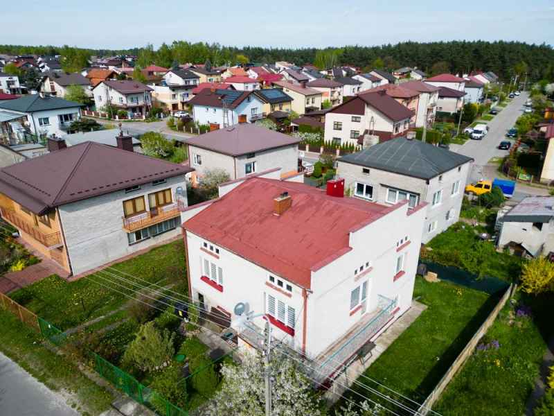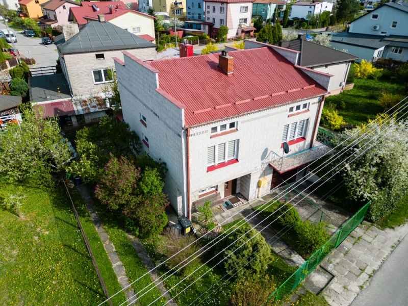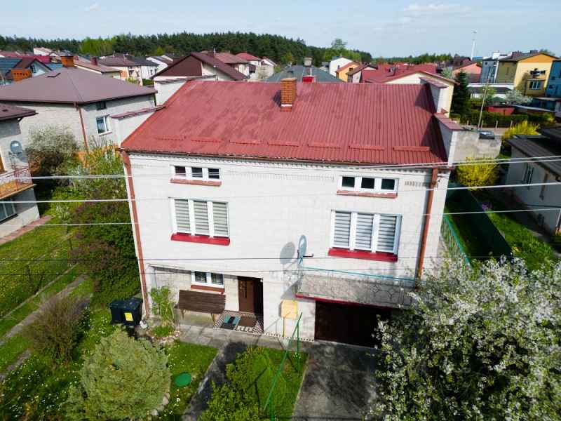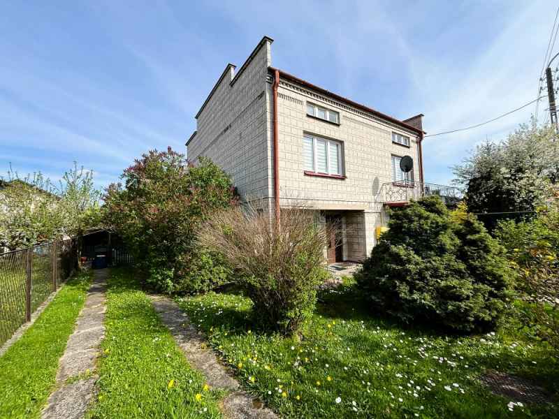 Dwukondygnacyjny dom o powierzchni 135m2 + garaż i kotłownia, usytuowany na działce 413m2 na osiedlu Kolonia Robotnicza. Wybudowany w latach osiemdziesiątych z białych bloczków silikatowych. Składa się z 6 pokoi, kuchni, 2 łazienek, 2 korytarzy, wiatrołapu, kotłowni oraz garażu z kanałem w bryle budynku. Dom ogrzewany piecem węglowym. Grzejniki żeliwne w całym domu. Dach pokryty blachą. Okna wymienione na PVC. W oknach zamontowane zostały rolety dzień-noc. Stolarka drzwiowa i okienna w dobrym stanie. Powyżej drugiej kondygnacji umiejscowiony jest strych który został dodatkowo ocieplony. Konstrukcja dachowa oraz stan murów w bardzo dobrym stanie. Podłogi częściowo drewniane z bardzo dobrej jakości drewna. W łazienkach glazura oraz terakota. Instalacja elektryczna miedziana. Pozostała część podłóg wyłożona panelami i parkietem. Przestronna kuchnia z klimatyczną piecokuchnią w nowoczesnym wydaniu. Dom wewnątrz odświeżany na bieżąco, więc nadaje się do zamieszkania od zaraz. Wszystkie instalacje sprawne. Budynek ze względu na grube mury jest ekonomiczny pod względem ogrzewania.