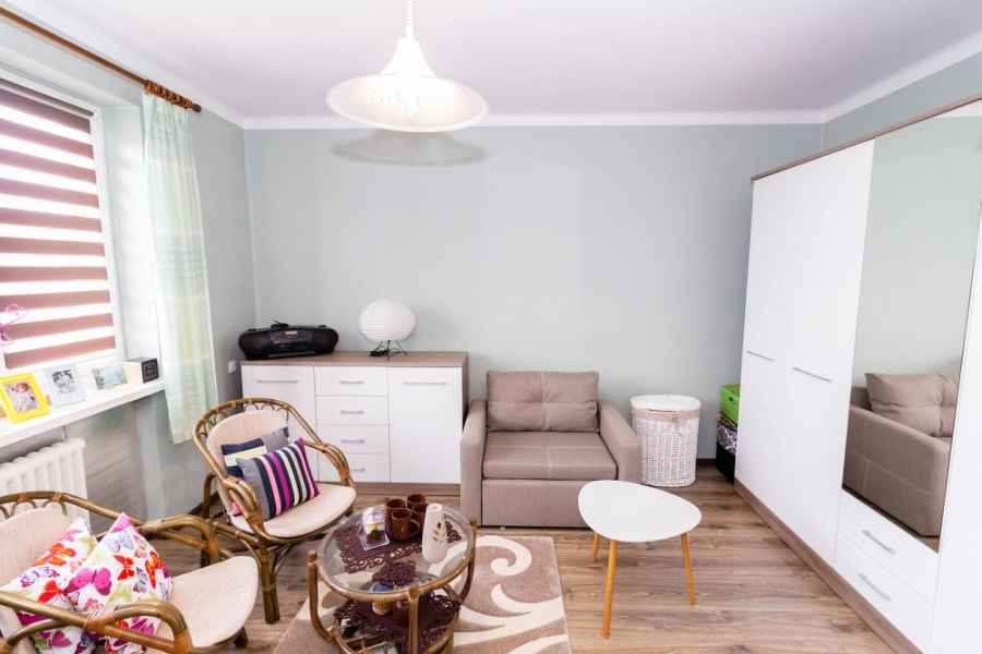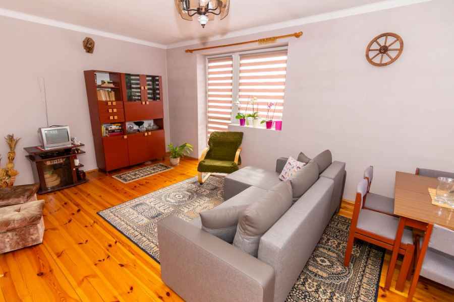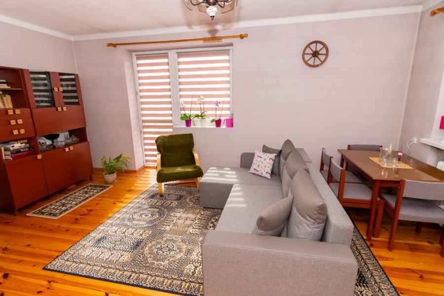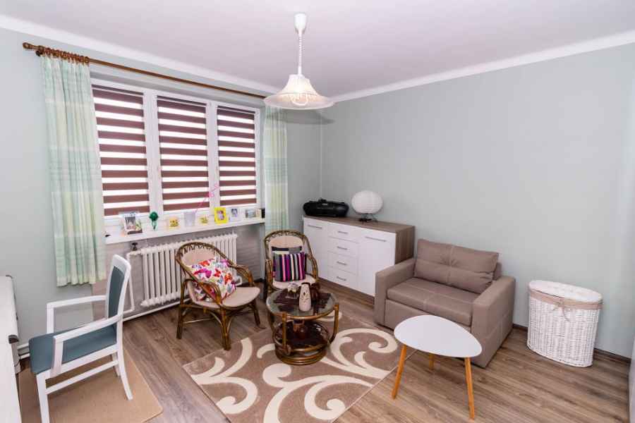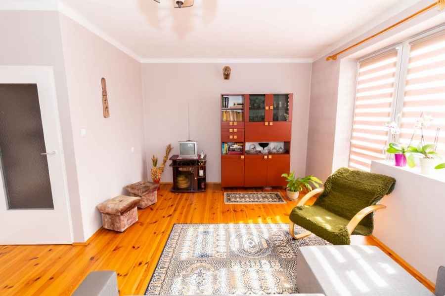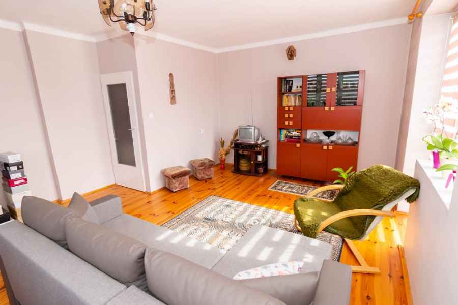 Dwukondygnacyjny dom o powierzchni 135m2 + garaż i kotłownia, usytuowany na działce 413m2 na osiedlu Kolonia Robotnicza. Wybudowany w latach osiemdziesiątych z białych bloczków silikatowych. Składa się z 6 pokoi, kuchni, 2 łazienek, 2 korytarzy, wiatrołapu, kotłowni oraz garażu z kanałem w bryle budynku. Dom ogrzewany piecem węglowym. Grzejniki żeliwne w całym domu. Dach pokryty blachą. Okna wymienione na PVC. W oknach zamontowane zostały rolety dzień-noc. Stolarka drzwiowa i okienna w dobrym stanie. Powyżej drugiej kondygnacji umiejscowiony jest strych który został dodatkowo ocieplony. Konstrukcja dachowa oraz stan murów w bardzo dobrym stanie. Podłogi częściowo drewniane z bardzo dobrej jakości drewna. W łazienkach glazura oraz terakota. Instalacja elektryczna miedziana. Pozostała część podłóg wyłożona panelami i parkietem. Przestronna kuchnia z klimatyczną piecokuchnią w nowoczesnym wydaniu. Dom wewnątrz odświeżany na bieżąco, więc nadaje się do zamieszkania od zaraz. Wszystkie instalacje sprawne. Budynek ze względu na grube mury jest ekonomiczny pod względem ogrzewania.