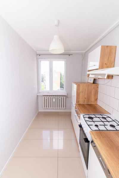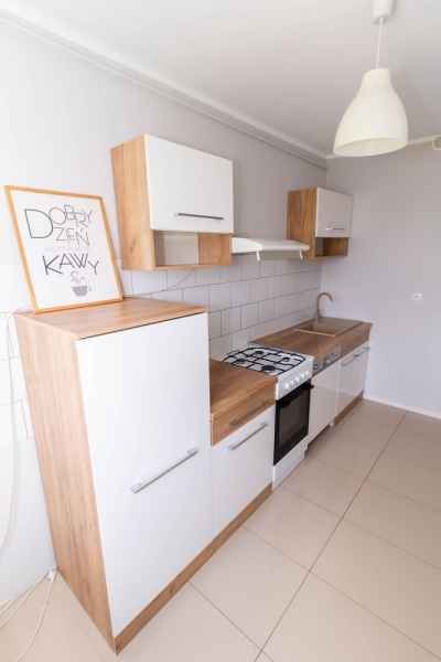 Przestronne, widne mieszkanie o powierzchni 57,69m2 mieści się na czwartym piętrze w czteropiętrowym bloku na osiedlu Stawki 20, w Ostrowcu Świętokrzyskim. Mieszkanie przeszło w ostatnim czasie remont na większości powierzchni, posiada balkon typu loggia oraz ustawną powierzchnię. To 3 pokoje z oddzielną widną, kuchnią oraz łazienką i osobną toaletą. W jednym z pokoi oraz w przedpokoju znajduję się szafa zabudowana. Korytarz i kuchnia zostały wykończone gresem w jasnym, kremowym kolorze, który świetnie komponuje się z nowymi szafkami w zabudowie w kolorze białym. Podłogi w pokojach wyłożone zostały panelami w brązowych odcieniach. Ekspozycja okien na 2 strony bloku - zachód i wschód. W łazience położona została glazura i terakota. Okna wymienione na PVC. Kuchnia została wyposażona w nowe meble oraz kuchenkę gazową i zmywarkę.  Nad oknami w każdym pomieszczeniu zamontowane zostały karnisze. W łazience zamontowana duża wanna, nowa umywalka i lustro. Powierzchnia i kształt pomieszczeń pozwalają na aranżację według własnego gustu. Dużym atutem mieszkania jest gaz w czynszu oraz ciepła woda z sieci - brak termy!
