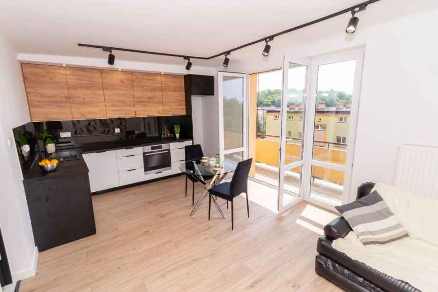 Widne, dwustronne mieszkanie o powierzchni 45m2 mieści się na trzecim piętrze w trzypiętrowym bloku na ul. Sienkiewicza 44 w Ostrowcu Św. Lokal świeżo po generalnym remoncie. Składa się z 2 sypialni, salonu z aneksem kuchennym, przestronnego korytarza, łazienki oraz szerokiego balkonu typu loggia. Pokoje wyłożone bardzo dobrej jakości panelami podłogowymi, na ścianach zostały wykonane gładzie. W łazience oraz przedpokoju dobrej jakości terakota, w łazience glazura oraz terakota. Wymienione zostały wszytkie instalacje - elektryczna, wodno-kanalizacyjna. Zamontowane zostały nowe grzejniki. W łazience zamontowany zabudowany dolnopłuk, kabina prysznicowa, stylowa umywalka, podświetlone lustro oraz nowy grzejnik i wysokiej jakości ekonomiczny bojler 80l. W jednej z sypialni nowa, przestronna szafa trzydrzwiowa. Aneks kuchenny to wysokiej jakości meble zabudowane z miejscem na własne AGD, ledowym podświetleniem oraz panelami szklanymi na ścianie co daje wspaniały efekt wizualny i łatwość w utrzymaniu czystości. Na ścianie zostały wykonane w przemyślany sposób dodatkowe podłączenia elektryczne oraz wodne pod własny sprzęt AGD. W całym mieszkaniu zamontowane zostało ekonomiczne oświetlenie typu LED. W salonie oraz sypialniach listy oświetleniowe modułowe z punktami świetlnymi. Listwy pozwalające skomponować ilość punktów świetlnych pod swój gust. Salon z ogromnymi, trzyskrzydłowymi drzwiami na balkon co otwiera przestrzeń na zewnątrz i sprawia wrażenie mieszkania z tarasem. Okna wymienione na PVC oraz wymieniona stolarka drzwiowa wewnętrzna oraz zamontowane drzwi wejściowe antywłamaniowe. Ekspozycja okien na 2 strony bloku, czyli północny-zachód i południowy wschód. Lokal wystawiony na sprzedaż bez sprzętu AGD (okap wchodzi w skład mebli kuchennych)! Lokal z bardzo niskim czynszem!