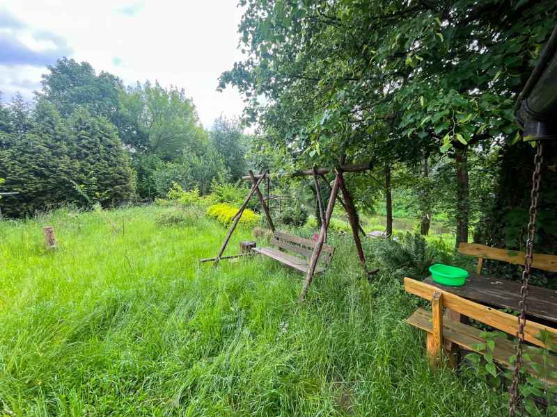 Dom ogrzewany piecokuchnią. Działka z dostępem do wody, prądu i kanalizacji. Woda ogrzewana bojlerem. Podłogi drewniane oraz wyłożone linoleum. Okna PVC i drewniane. Działka częściowo ogrodzona z bezpośrednim dostępem do drogi publicznej. Drzewa i rośliny na granicach zapewniają intymność i izolację od sąsiadów. Działka posiada dostęp do rzeki Kamiennej (do której prowadzą schodki), co pozwala korzystać z uroków natury, spacerować wzdłuż rzeki. Miejsce idealne dla amatorów wędkowania! Jest to również idealne miejsce na spływy kajakowe. Istnieje możliwość utworzenia własnej plaży. Jest to wyjątkowa przestrzeń, którą można wykorzystać do własnych celów rekreacyjnych i wypoczynkowych.