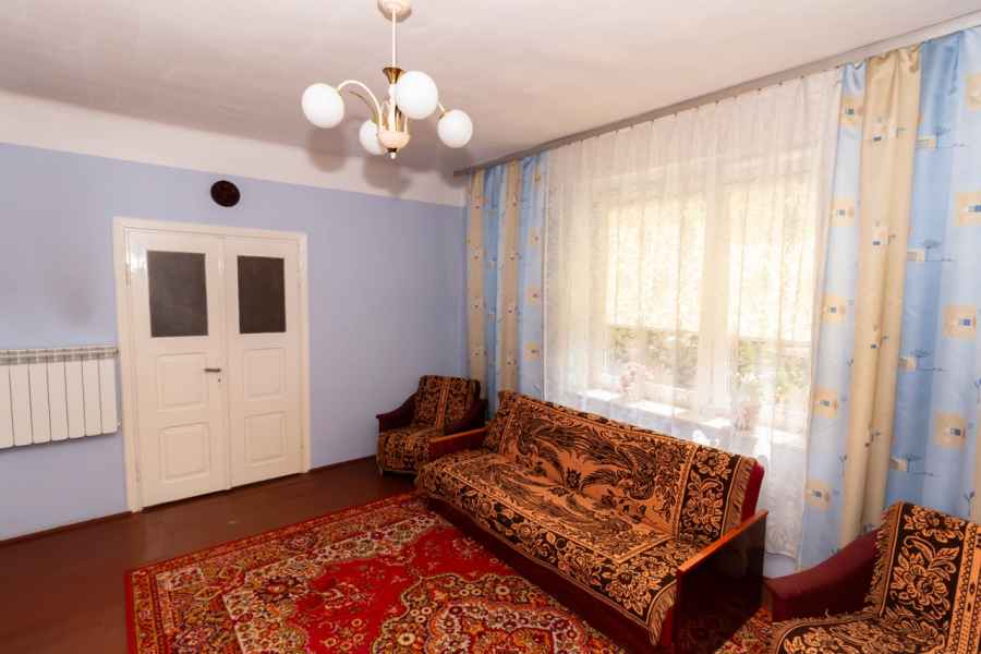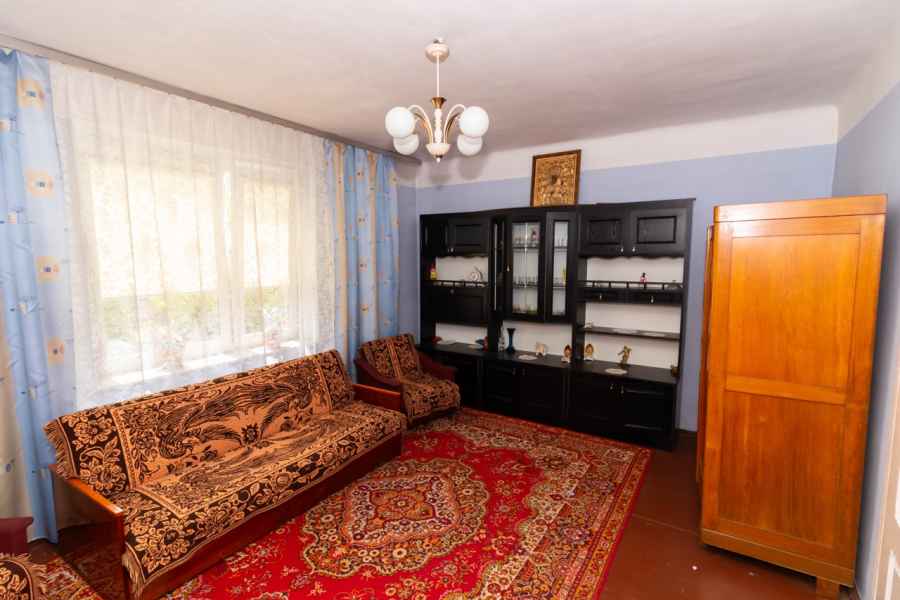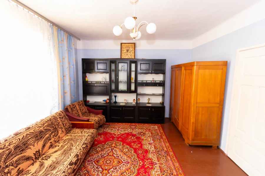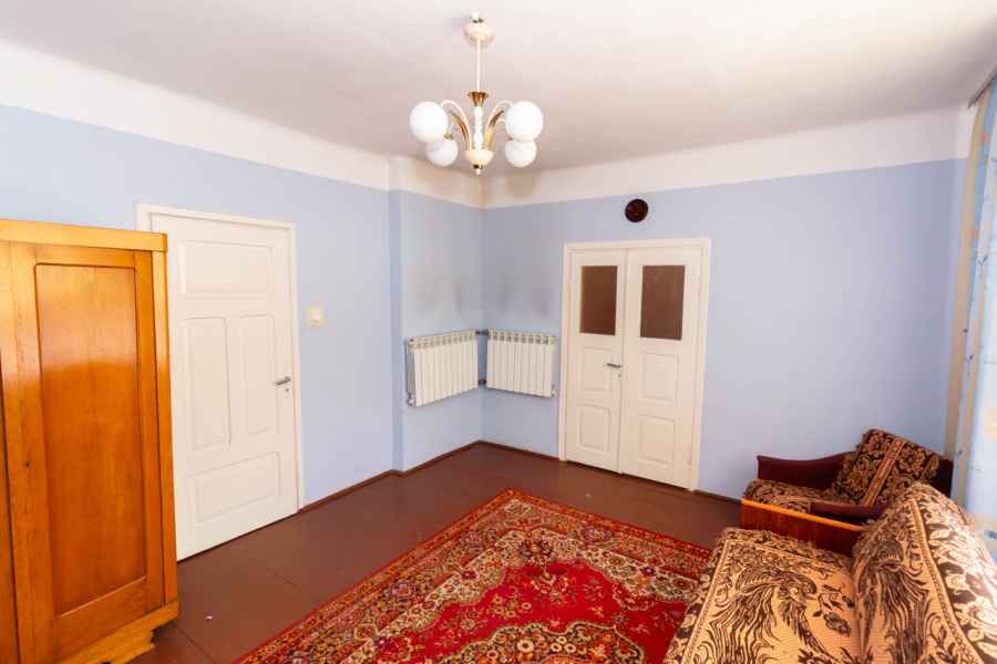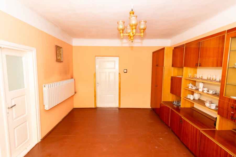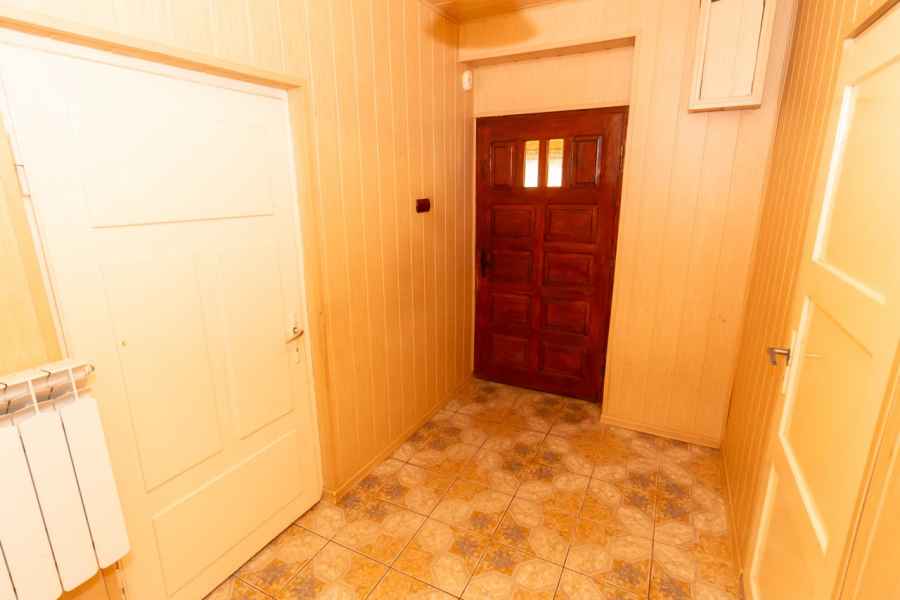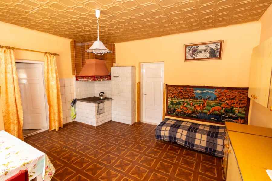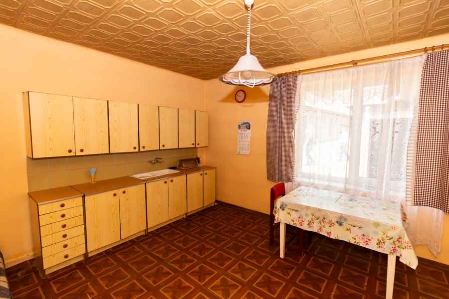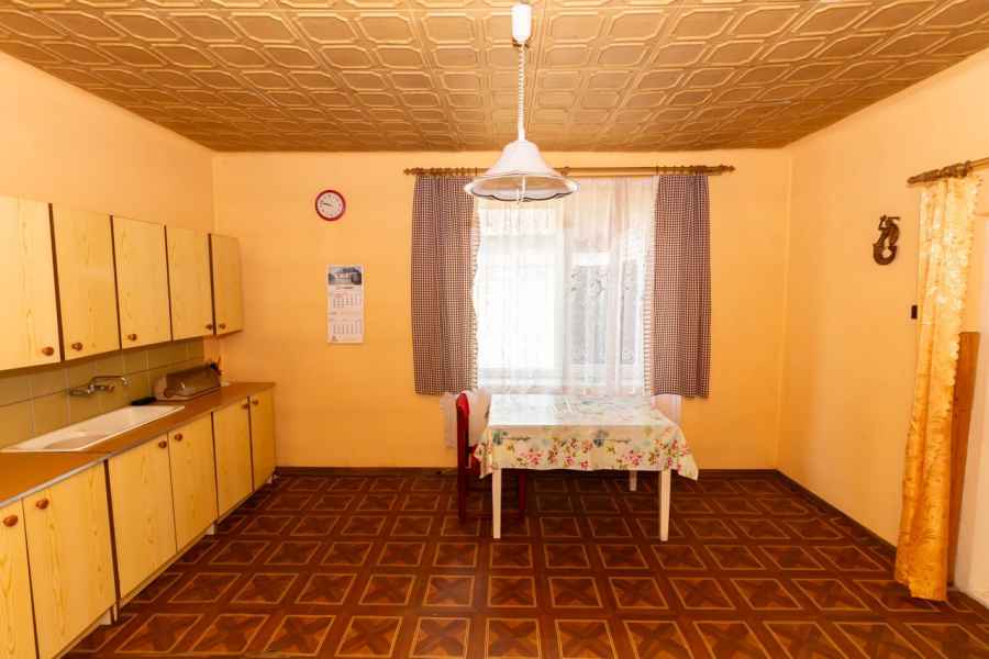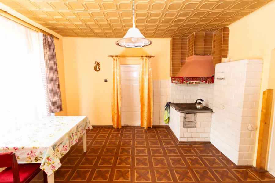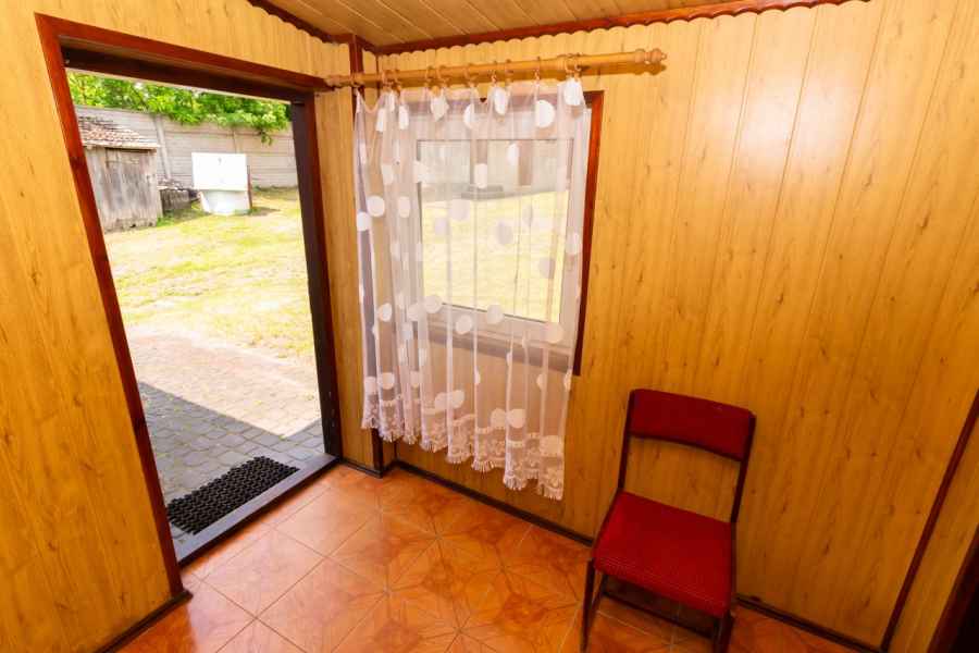 W skład bryły domu wchodzą: ganek, przedpokój, przestronna, widna kuchnia z piecokuchnią, 2 przechodnie pokoje, kotłownia, z której prowadzą schody na obszerny, wysoki strych, piwnica oraz dodatkowe pomieszczenie, które można wykorzystać wg własnego pomysłu. Może być przeznaczone pod łazienkę, spiżarnię, garderobę lub zaaranżowane na klatkę schodową wiodącą na strych. Strych do zagospodarowania według uznania. Można na nim wyodrębnić kilka osobnych pokoi. Okna PVC, podłogi drewniane. Dach pokryty onduliną – nie jest to eternit.