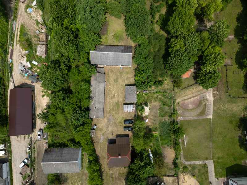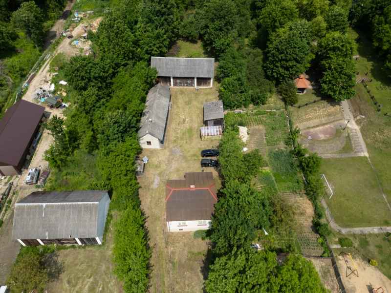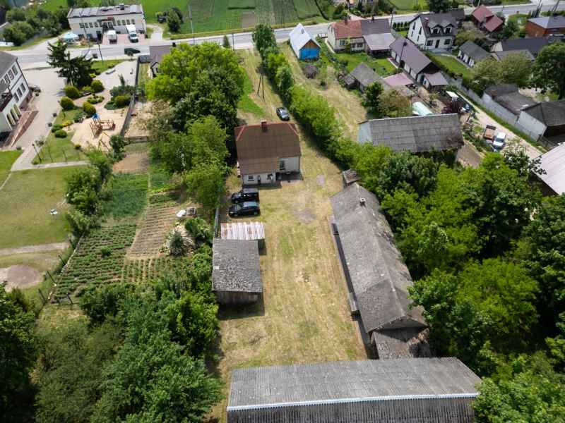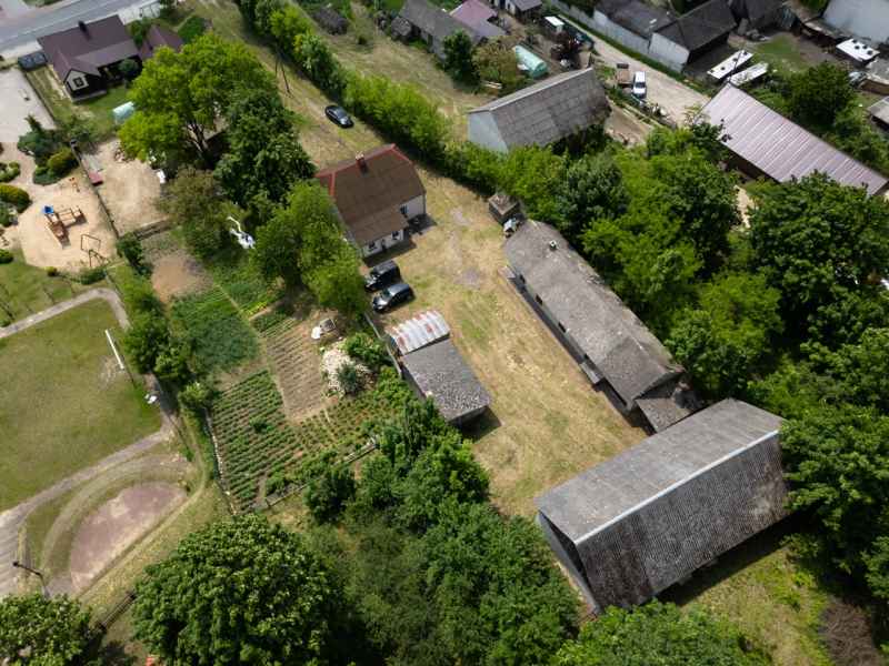 W skład nieruchomości wchodzą murowane budynki gospodarcze z kuchnią letnią, murowana stodoła oraz zadaszenie mogące pełnić funkcję wiaty garażowej oraz niewielki lasek. Na podwórku znajduje się działająca studnia. Działka w całości ogrodzona.