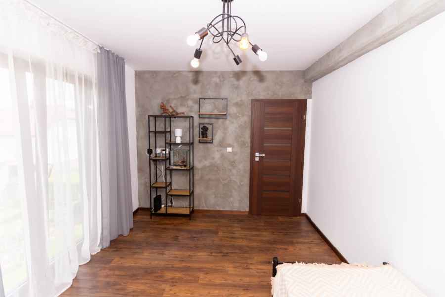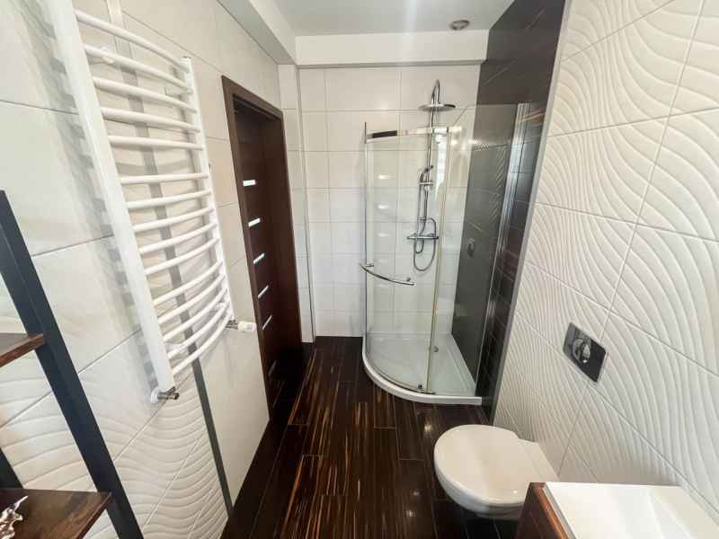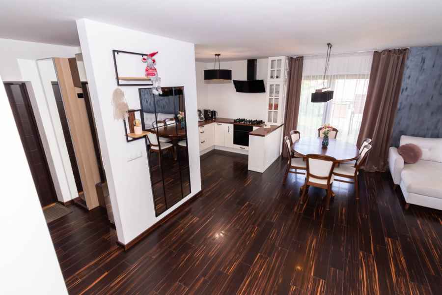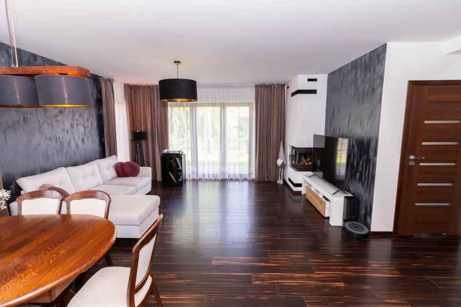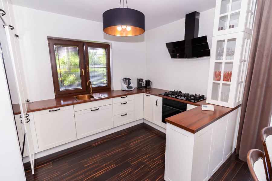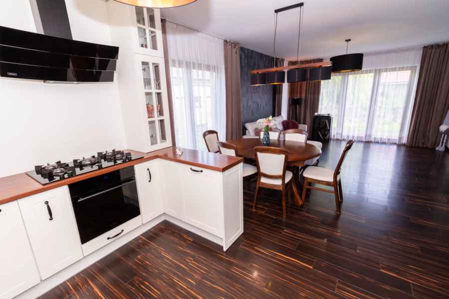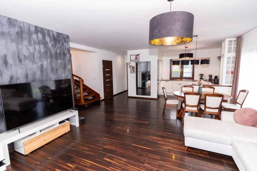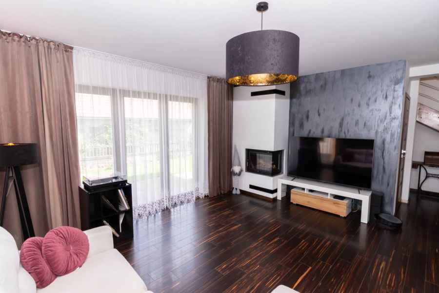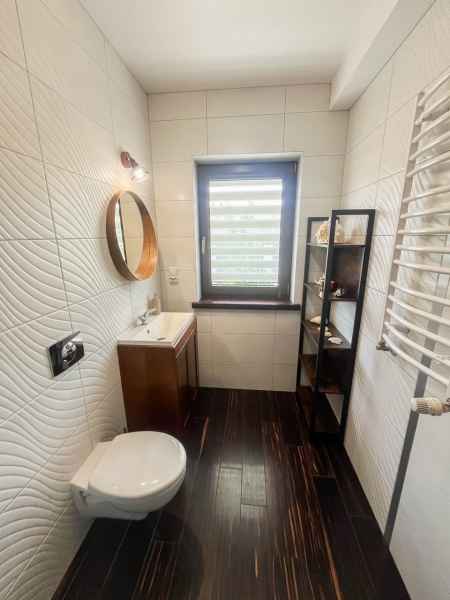 Przestronny, widny dom wolnostojący o powierzchni użytkowej111,48m2 usytuowany na działce 542m2 w miejscowości Bodzechów na przedmieściach Ostrowca Świętokrzyskiego. Wybudowany w 2019r. wg projektu Z297 firmy Z500. Jest to projekt o prostej bryle z dachem dwuspadowym oraz piętrem o pełnej wysokości, bez skosów. Właściciele nieco powiększyli oryginalny projekt. Na parterze znajduje się przestronny, widny salon połączonym z jadalnią i kuchnią, łazienka z prysznicem oraz kotłownia/pralnia (z wyjściem na ogród). Salon to 26,7m2 powierzchni z bezpośrednim wyjściem na część ogrodową oraz klimatycznym kominkiem umilającym długie zimowe wieczory. W kuchni zamontowane meble w zabudowie z drewnianymi blatami. Kuchnia wyposażona w lodówkę, zmywarkę, 5-palnikową kuchnię gazową i piekarnik w zabudowie. W przedpokoju znajdują się szafy oraz siedzisko. Piętro to prywatna strefa domowników - łazienka z wanną i 3 sypialnie. Jedna z nich posiada pojemną garderobę oraz wyjście na balkon. Budynek posiada też obszerny strych. Stan murów i konstrukcji dachowej w stanie idealnym. Elewacja położona na części domu. Drzwi wejściowe przeciwwłamaniowe. Okna PVC Winergetic Pramium firmy Oknoplast zapewniające bardzo dobrą izolację termiczną. Na dachu dobrej jakości blachodachówka. Wszystkie instalacje sprawne. Dom ocieplony 15-centymetrową warstwą styropianu Termo Organika Gold, część dachowa ocieplona wełną mineralną Rockwool. Budynek ogrzewany automatycznym piecem gazowym. dwufunkcyjnym z zasobnikiem wody. W całości domu zamontowane zostało ogrzewanie podłogowe. Budynek bardzo ekonomiczny pod względem ogrzewania! Podłogi wyłożone terakotą i panelami. Parapety i wykończenia drewniane. Łazienki wykończone glazurą i terakotą. Balustrady i schody samonośne wykonane z drewna jesionowego. Na ścianach gładzie. Zamontowana również została stacja uzdatniania wody. Działka wyposażona we wszystkie potrzebne media.