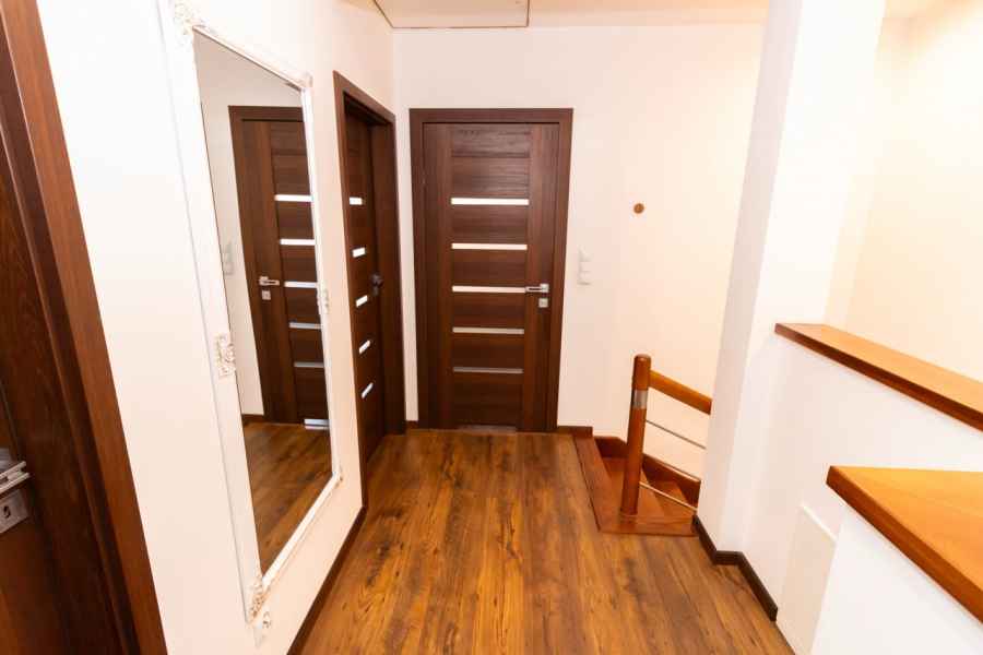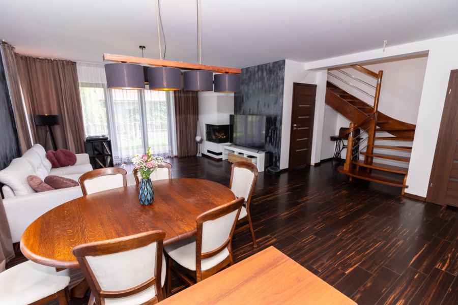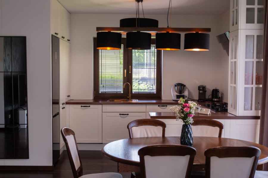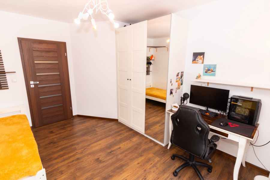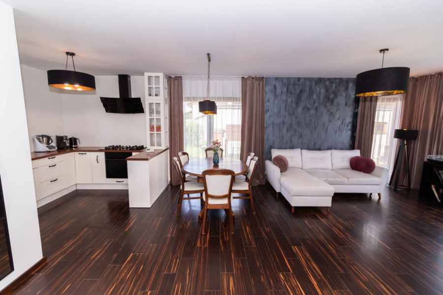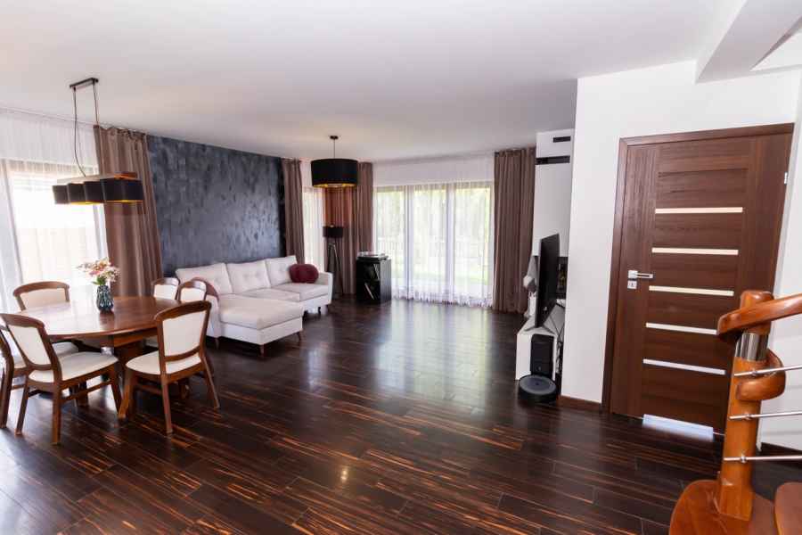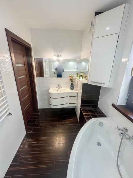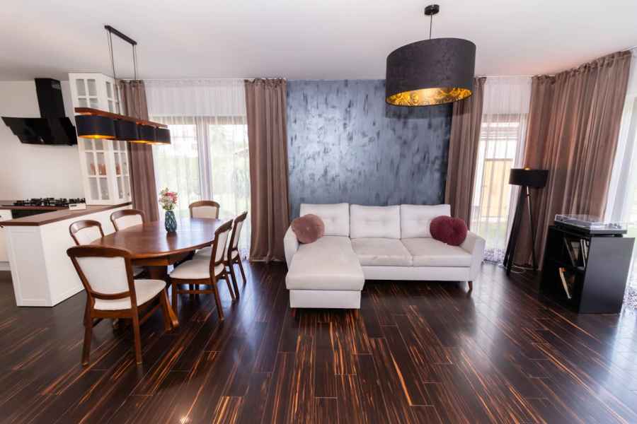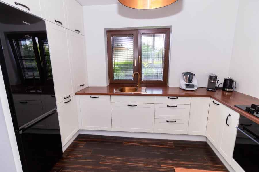 Przestronny, widny dom wolnostojący o powierzchni użytkowej111,48m2 usytuowany na działce 542m2 w miejscowości Bodzechów na przedmieściach Ostrowca Świętokrzyskiego. Wybudowany w 2019r. wg projektu Z297 firmy Z500. Jest to projekt o prostej bryle z dachem dwuspadowym oraz piętrem o pełnej wysokości, bez skosów. Właściciele nieco powiększyli oryginalny projekt. Na parterze znajduje się przestronny, widny salon połączonym z jadalnią i kuchnią, łazienka z prysznicem oraz kotłownia/pralnia (z wyjściem na ogród). Salon to 26,7m2 powierzchni z bezpośrednim wyjściem na część ogrodową oraz klimatycznym kominkiem umilającym długie zimowe wieczory. W kuchni zamontowane meble w zabudowie z drewnianymi blatami. Kuchnia wyposażona w lodówkę, zmywarkę, 5-palnikową kuchnię gazową i piekarnik w zabudowie. W przedpokoju znajdują się szafy oraz siedzisko. Piętro to prywatna strefa domowników - łazienka z wanną i 3 sypialnie. Jedna z nich posiada pojemną garderobę oraz wyjście na balkon. Budynek posiada też obszerny strych. Stan murów i konstrukcji dachowej w stanie idealnym. Elewacja położona na części domu. Drzwi wejściowe przeciwwłamaniowe. Okna PVC Winergetic Pramium firmy Oknoplast zapewniające bardzo dobrą izolację termiczną. Na dachu dobrej jakości blachodachówka. Wszystkie instalacje sprawne. Dom ocieplony 15-centymetrową warstwą styropianu Termo Organika Gold, część dachowa ocieplona wełną mineralną Rockwool. Budynek ogrzewany automatycznym piecem gazowym. dwufunkcyjnym z zasobnikiem wody. W całości domu zamontowane zostało ogrzewanie podłogowe. Budynek bardzo ekonomiczny pod względem ogrzewania! Podłogi wyłożone terakotą i panelami. Parapety i wykończenia drewniane. Łazienki wykończone glazurą i terakotą. Balustrady i schody samonośne wykonane z drewna jesionowego. Na ścianach gładzie. Zamontowana również została stacja uzdatniania wody. Działka wyposażona we wszystkie potrzebne media.