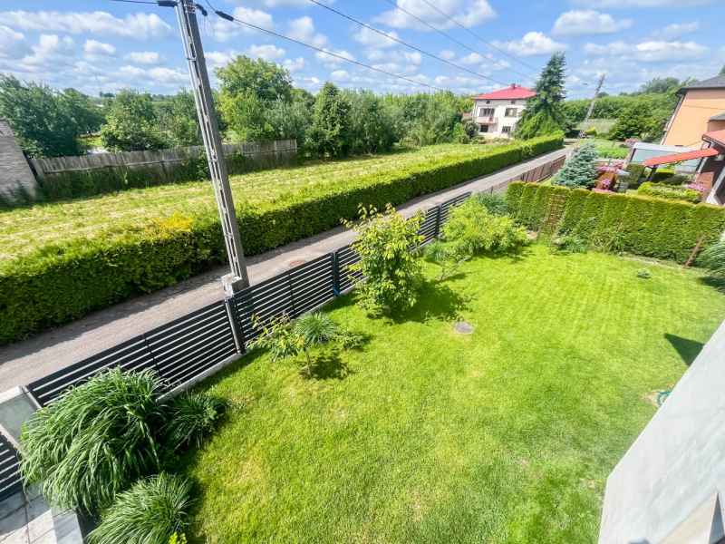 Część działki do zaadaptowania według własnego gustu. Możliwość wybudowania tarasu na tyłach domu z bezpośrednim wyjściem z salonu. Istnieje też opcja dobudowania balkonów. W ogrodzie znajduje się murowany domek obecnie pełniący rolę komórki. Może on zostać przekształcony na domek gościnny lub miejsce na grilla sprzyjające spotkaniom z przyjaciółmi i rodziną. Do domku zostały podpięte gaz i prąd. Woda na działce, przy domku. Na działce znajduje się studnia z pompą. Całość ogrodzona. Ogrodzenie z betonowych słupków oraz ocynkowanej palisady wykonanej na zamówienie. Brama wjazdowa automatyczna, sterowana z pilota. Działka usytuowana w pobliżu głównej drogi w kierunku Ćmielowa, ale dom znajduje się w głębi osiedla domów jednorodzinnych, co bardzo dobrze izoluje dźwięki i sprawia, że czuje się intymność i spokój.