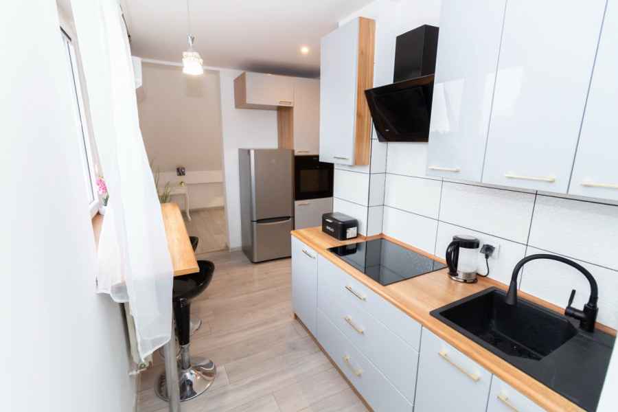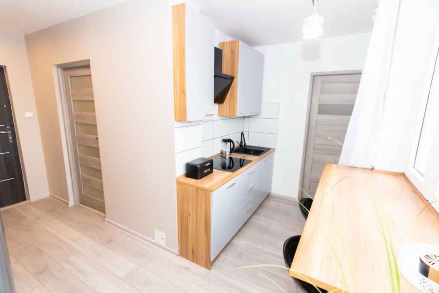 W 2024 roku mieszkanie przeszło generalny remont obejmujący: wymianę instalacji elektrycznej oraz hydrauliczno-kanalizacyjnej, gładzie na ścianach i sufitach, wykonanie nowych wylewek, położenie paneli w pokojach oraz glazury i terakoty w kuchni, przedpokoju i łazience. Łazienka została wyposażona w kabinę prysznicową, umywalkę. W korytarzu znajduje się przestronna szafa zabudowana. Kuchnia została urządzona nowoczesnymi meblami na wymiar ze sprzętem AGD. W całym mieszkaniu zastosowano energooszczędne oświetlenie LED. Wymieniono wszystkie drzwi wewnętrzne oraz nowoczesne antywłamaniowe drzwi wejściowe – co znacznie ogranicza przenikanie dźwięków z klatki schodowej. Okna PVC. Woda z ekonomicznego, nowoczesnego bojlera elektrycznego, brak gazu. Zamontowana wysokiej klasy wydajna, ekonomiczna klimatyzacja z funkcją ogrzewania.