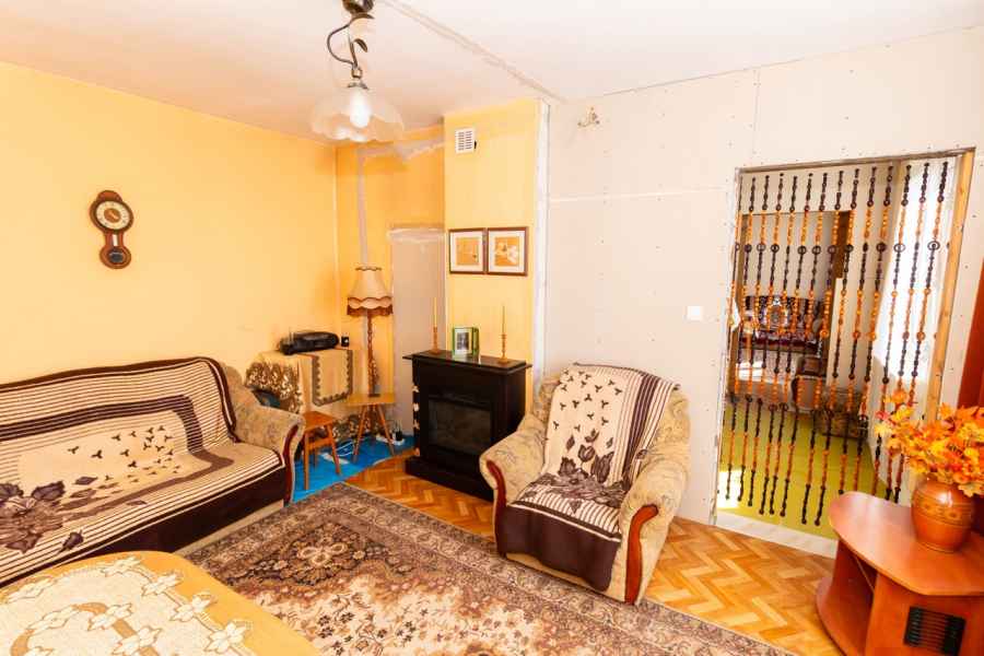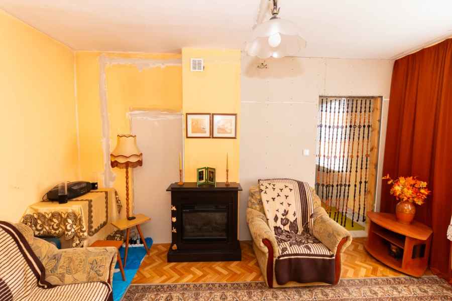 Parterowy dom jednorodzinny z potencjałem – w trakcie remontu. Można w nim zamieszkać już dziś! Lokal o funkcjonalnym układzie, na który składają się: dwa pokoje, duża kuchnia z murowaną ścianą dodającą klimatu, przestronna łazienka z miejscem na wannę i prysznic z odpływem liniowym, wiatrołap, korytarz oraz obszerny strych – idealny na przechowywanie lub adaptację. W przedpokoju i wiatrołapie dużo miejsca na szafy zabudowane czy siedzisko.