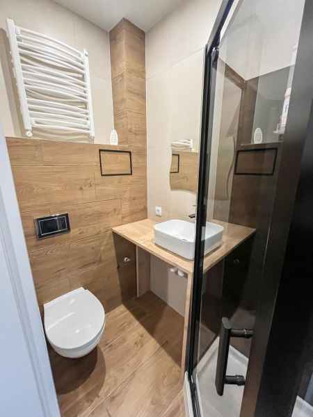 Mieszkanie po generalnym remoncie z wymienionymi wszystkimi instalacjami. Na ścianach wykonano nowe tynki kartonowo-gipsowe a w podwieszanych sufitach zamontowano ekonomiczne oświetlenie LED. Kuchnia została przygotowana pod montaż mebli – wszystkie podłączenia pod AGD są już wykonane. Okna PVC. Pokoje wyłożone są panelami podłogowymi, a w łazience i kuchni - glazura i terakota. W salonie oraz jednej z sypialni zostały podciągnięte przyłącza RTV.  Budynek posiada osobną, zamykaną klatkę schodową dla dwóch mieszkań – bezpieczne i kameralne rozwiązanie. W przestronnym zamykanym korytarzu znajduje się miejsce na wózek lub rowerW najbliższym czasie Spółdzielnia planuje remont klatki schodowej. Z okien wychodzących na północny-wschód rozpościera się piękny widok na drzewa i park Fabryczny, co zapewnia prywatność, ciszę i spokój. Wokół dużo zieleni, place zabaw, boiska, ławki. Jest to idealne miejsce na spacery, jogging, wyjścia z dziećmi lub psem. Z tyłu budynku bezpośrednie wejście do parku. Parking do dyspozycji mieszkańców mieści się za budynkiem.