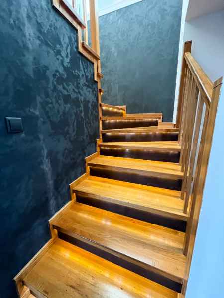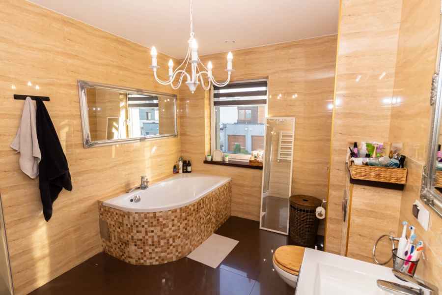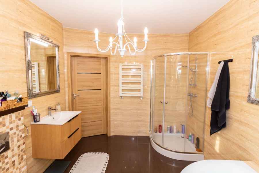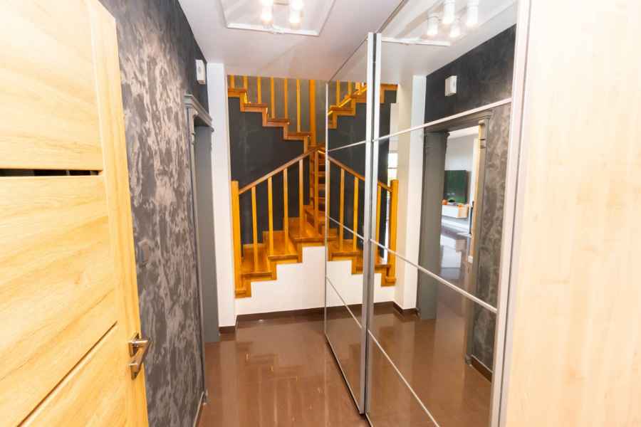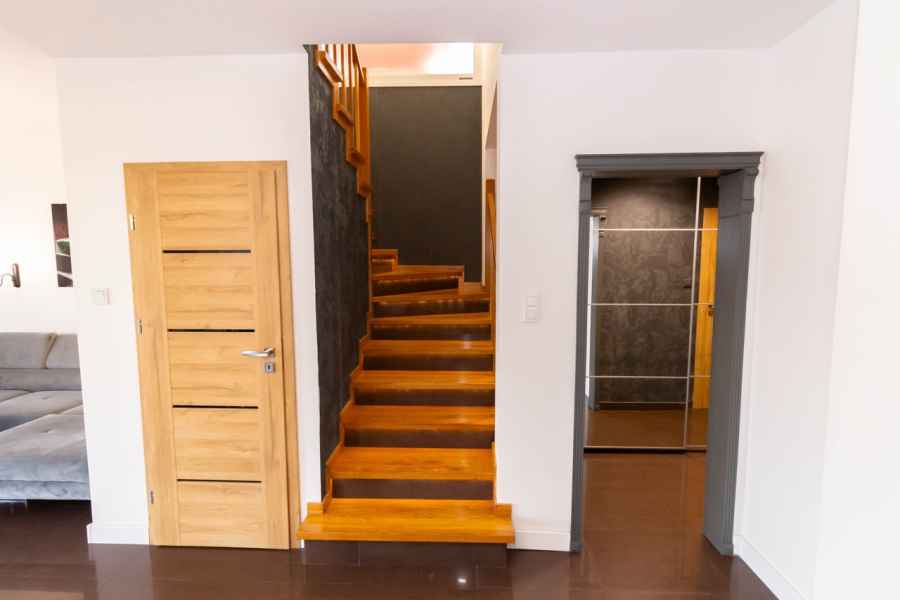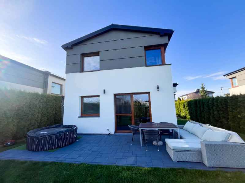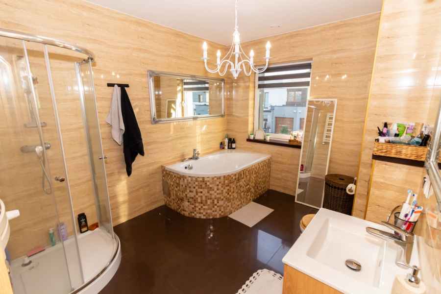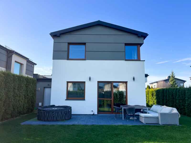 Zarówno mury, jak i konstrukcja dachu są w stanie idealnym. Dom jest ocieplony styropianem i wykończony elewacją. Dom wyposażony jest w wydajną instalację fotowoltaiczną oraz rekuperację co mocno wpływa na niskie koszty energii elektrycznej i gazu. Drzwi wejściowe oraz drzwi prowadzące do garażu - przeciwwłamaniowe. Zamontowano trzyszybowe okna PVC, zapewniające bardzo dobrą izolację termiczną. Ogrzewanie z dwufunkcyjnego pieca gazowego. W części parterowej domu zamontowane zostało ogrzewanie podłogowe na całej powierzchni. Ściany pokryte gładzią. Podłogi wyłożone terakotą i dobrej jakości panelami. Łazienki wykończone glazurą i terakotą. Dach pokryty jest dobrej jakości blachą. Na zewnątrz została zamontowana kamera monitoringowa z czujnikiem ruchu i systemem powiadamiania w przypadku zarejestrowania ruchu. Wszystkie instalacje sprawne. Na tyłach domu mieści się strefa zielona z zadbanym, regularnie pielęgnowanym trawnikiem, nasadzeniami wokół ogrodzenia dającymi intymność oraz tarasem. Na wyposażeniu domu jest automatyczny robot koszący oraz instalacja nawadniająca trawnik - sterowane z poziomu telefonu. Miejsce idealne do wypoczynku czy spotkań rodzinnych.