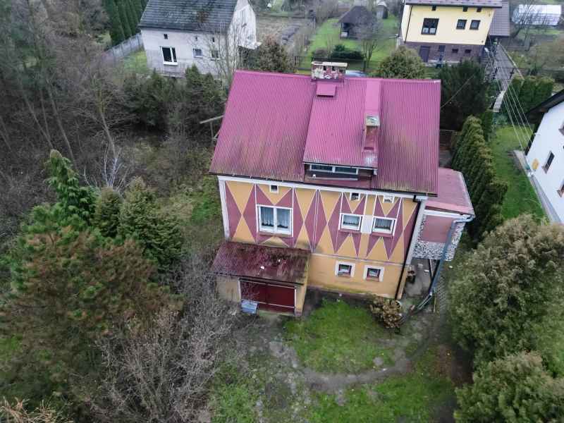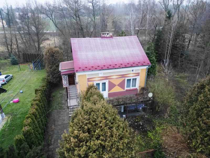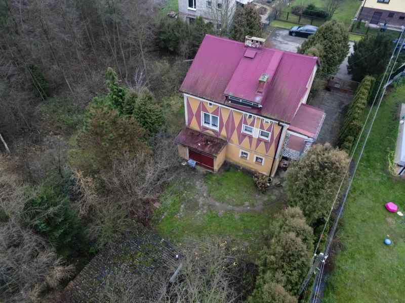 Trzykondygnacyjny dom o powierzchni użytkowej 137,8m2 + garaż i kotłownia, usytuowany jest na ogrodzonej działce o powierzchni 2273m2 w Ćmielowie przy ulicy Zielonej. Działka znajduje w spokojnej okolicy domów jednorodzinnych z bezpośrednim dostępem do drogi asfaltowej. Układ pomieszczeń: parter – pokój z balkonem, drugi pokój, kuchnia, łazienka i korytarz; piętro - 2 pokoje, łazienka, korytarz oraz balkon; przyziemie – garaż, kotłownia, pokój i letnia kuchnia. Na działce znajduje się drugi, osobny garaż. Dom ogrzewany jest piecem węglowym, z możliwością montażu nowoczesnego pieca gazowego dwufunkcyjnego. Budynek posiada solidne mury oraz konstrukcję dachową w dobrym stanie technicznym, a na dachu znajduje się blacha. Grube ściany zapewniają naturalną izolację, dzięki czemu zimą utrzymują ciepło, a latem chronią przed upałem. W domu zamontowane są drewniane okna. Budynek przeznaczony jest do remontu. Jest on idealną propozycją dla osób szukających nieruchomości z potencjałem, które chcą wykończyć wnętrza według własnych upodobań. W cenie znajdują się dwie działki – jedna zabudowana domem (755m2, druga niezabudowana 1518m2), z bezpośrednim dostępem do drogi publicznej. Niezabudowaną działkę można wykorzystać pod budowę, rekreację, ogród lub traktować jako inwestycję na przyszłość. Działka posiada kanalizację, a pozostałe media znajdują się na działce z domem.