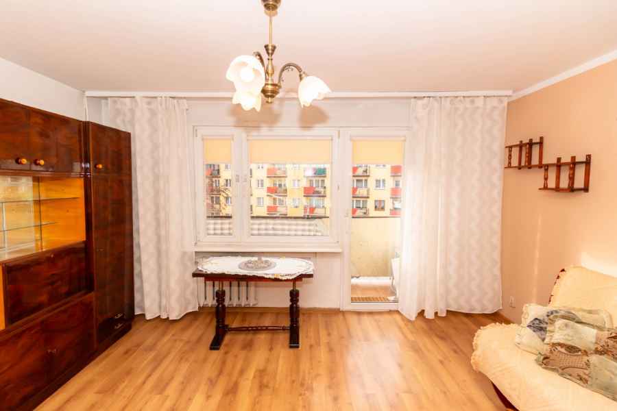 Częściowo meblowane, ustawne, dwustronne mieszkanie o powierzchni 35,58m2 mieści się na drugim piętrze w czteropiętrowym bloku na Osiedlu Stawki w Ostrowcu Świętokrzyskim. Lokal idealny do zamieszkania lub jako gotowiec pod wynajem! Mieszkanie posiada balkon typu loggia oraz bardzo ustawną powierzchnię. To 1 przestronny pokój z oddzielną, widną, przestronną kuchnią i łazienką z WC. Ekspozycja okien na 2 strony bloku, czyli wschód-zachód. W łazience terakota i glazura. Okna PVC. Podłogi wyłożone panelami oraz terakotą. Na wyposażeniu mieszkania kuchenne meble w zabudowie, kuchenka, lodówka oraz pralka. W pokoju kanapa oraz 2 fotele. Rozmieszczenie pomieszczeń pozwala na zaadaptowanie 2 pokoi z aneksem kuchennym. Na balkonie terakota. Niewątpliwym atutem mieszkania jest gaz w czynszu! Okolica dobrze skomunikowana z resztą miasta. Wokół dużo zieleni osiedlowej, plac zabaw. Niedaleko przystanki autobusowe, szkoła podstawowa, przedszkole, kościół, liczne sklepy oraz cała masa innych punktów handlowych i usługowych. Blok ocieplony z przestronną, schludną klatką schodową. Zamontowany domofon. Bardzo miłe i spokojne sąsiedztwo. Do mieszkania przynależy piwnica. Opłaty uiszczane do Spółdzielni Mieszkaniowej - 400zł w tym: gaz, wywóz śmieci, opłata eksploatacyjna, fundusz remontowy, ogrzewanie, 1m3 wody zimnej i 1m3 wody ciepłej i inne.