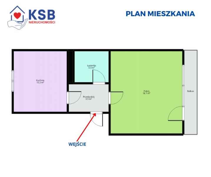 Kawalerka, 2 pokoje z dużym balkonem, 2 piętro - Osiedle Stawki – 35,58m2