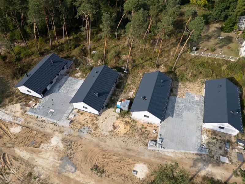 Docelowo domy zostaną oddane w standardzie deweloperskim. Obecnie trwają ostatnie prace wykończeniowe, które obejmują: