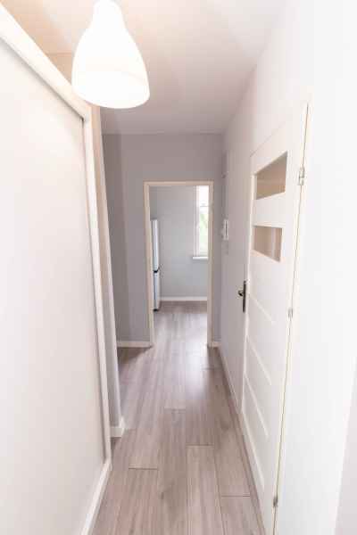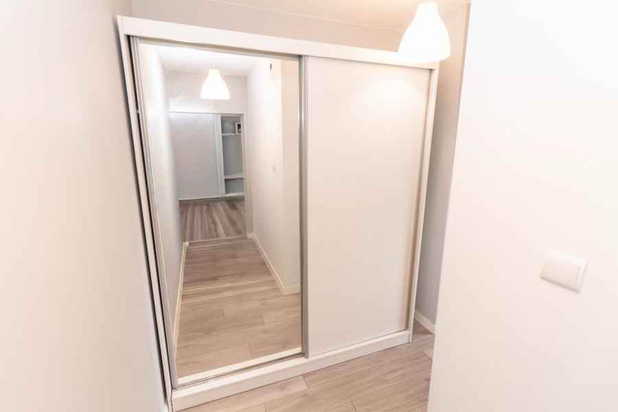 - Przedpokój z przestronną szafą z lustrzanymi drzwiami,