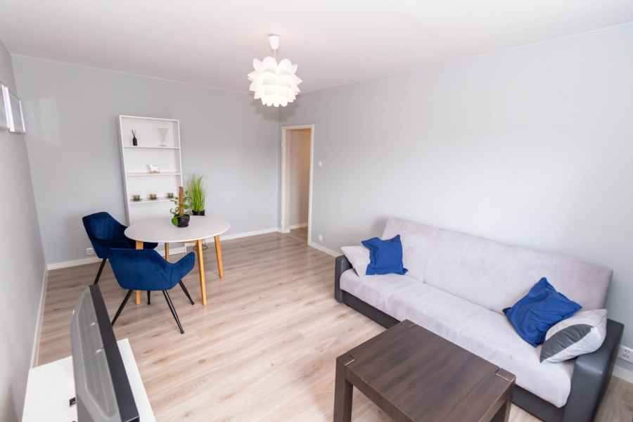 Kawalerka o powierzchni 34m2 na 3 piętrze w 10 piętrowym bloku z windą. Mieszkanie, przytulne, umeblowane i w pełni wyposażone, do zamieszkania od "zaraz". Nie wymaga remontu ani odświeżenia.W 2025r. mieszkanie zostało odświeżone a salon przeszedł generalny remont.