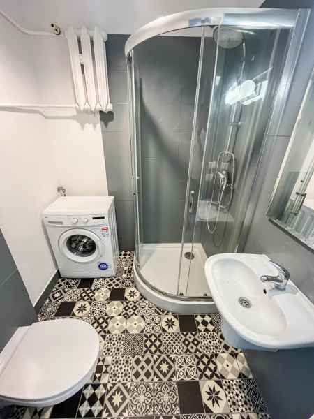- Wyposażona łazienka z kabiną prysznicową oraz pralką,