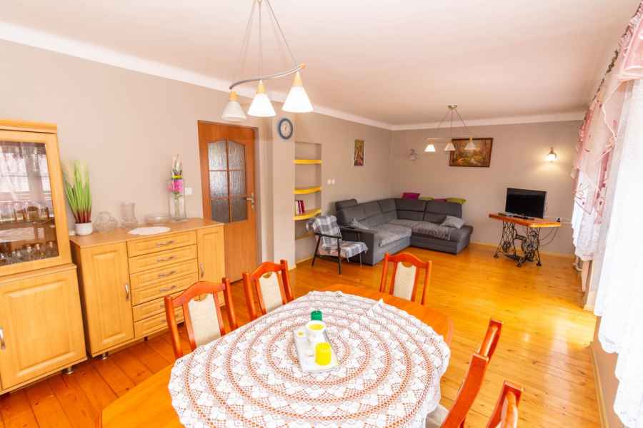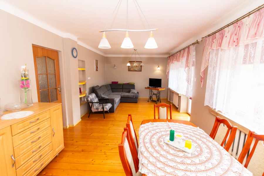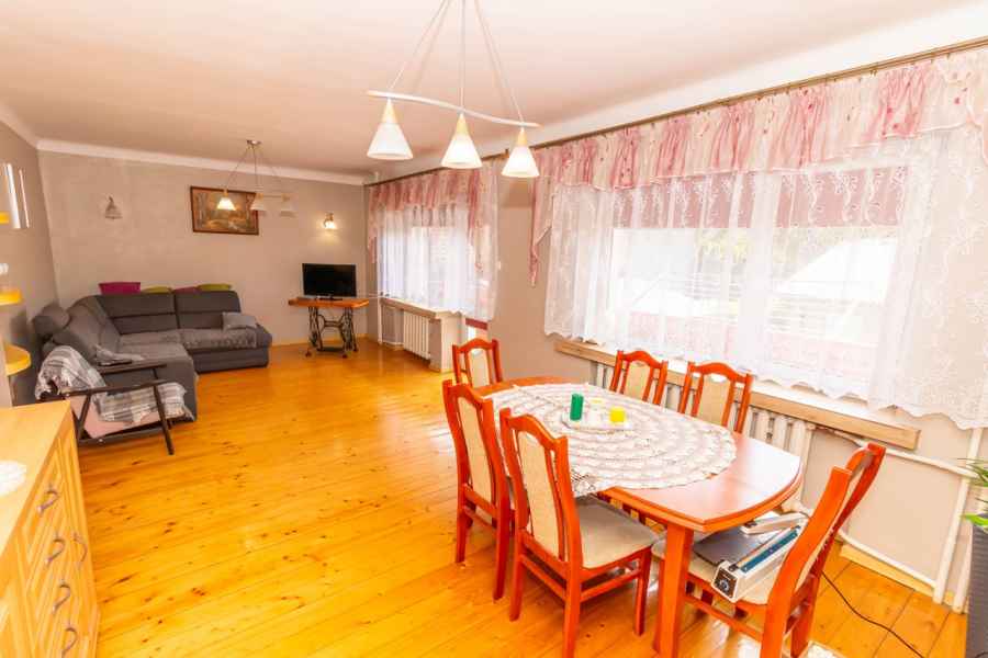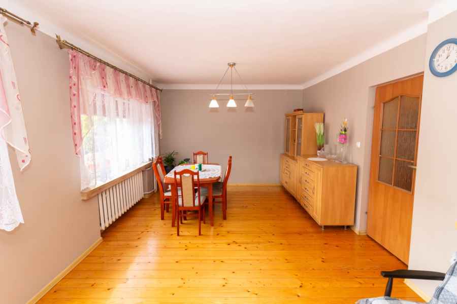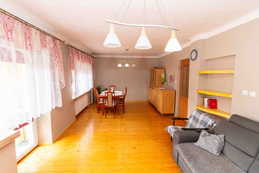 Zadbany, widny dom o powierzchni użytkowej 116m2, usytuowany na działce o powierzchni 338m2 w miejscowości Ostrowiec Św. To 2 kondygnacje mieszkalne z 5 sypialniami, przestronnym salonem połączonym z jadalnią, widną kuchnią, 2 łazienkami i 3 dużymi balkonami (1 od strony ulicy i 2 od strony podwórka). Wewnątrz podłogi częściowo drewniane, częściowo wyłożone panelami. Okna PVC. Grzejniki żeliwne.